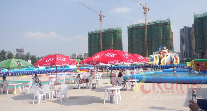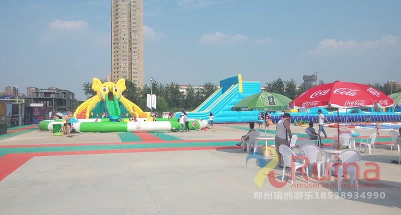 目前比較時尚流行的移動水上樂園,具有投資量可控,可根據場地大小進行調整,在短時間內可組建完成,迅速投入經營,建設日期為常規的二十分之一到三十分之一,投資規模在常規主題樂園的十分之一到四十分之一。夏季經營結束后,產品可迅速收起,易于保管,不占用場地,經營場所可另作他用。