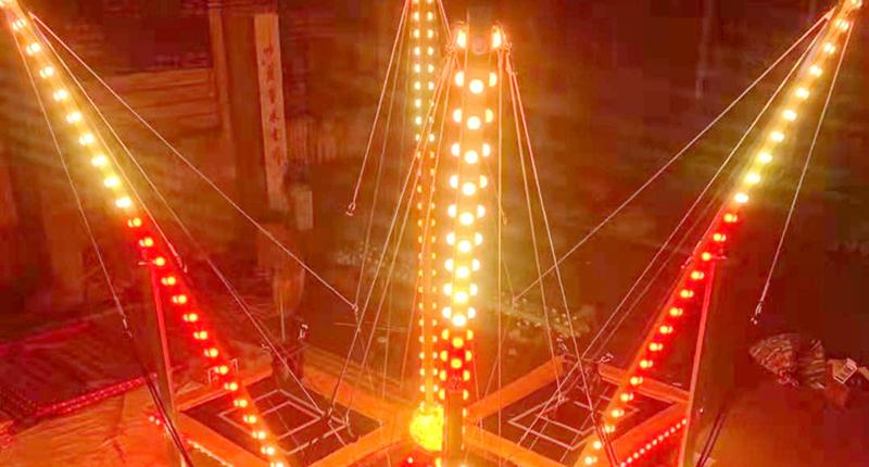 常規四人蹦極他沒有裝飾也沒有燈光的,就是四個面小孩在上面玩耍的,但是四人發光蹦極就不是這種的了,他這邊除了有豪華轉馬裝飾外,這邊還有燈光的,并且燈光的效果是出乎意料的,如果晚上經營的話,這是一個不錯的選擇。