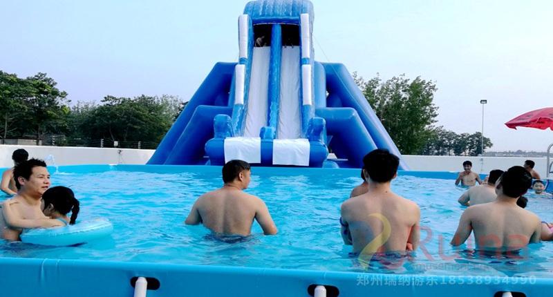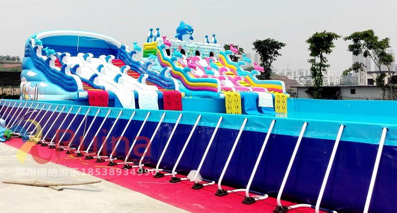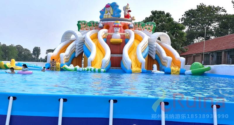 3、支架游泳池的游玩方式多樣,支架水池即可以和一些動物卡通人物造型的水上滑梯組合使用,還可以將不同規格的支架泳池通過各種充氣模型玩具組合,組成一個集娛樂性、競賽性的水上沖關闖關設備,可以調整支架游泳池位置來改變水上沖關關卡設置,豐富水上沖關的趣味性和耐玩性。